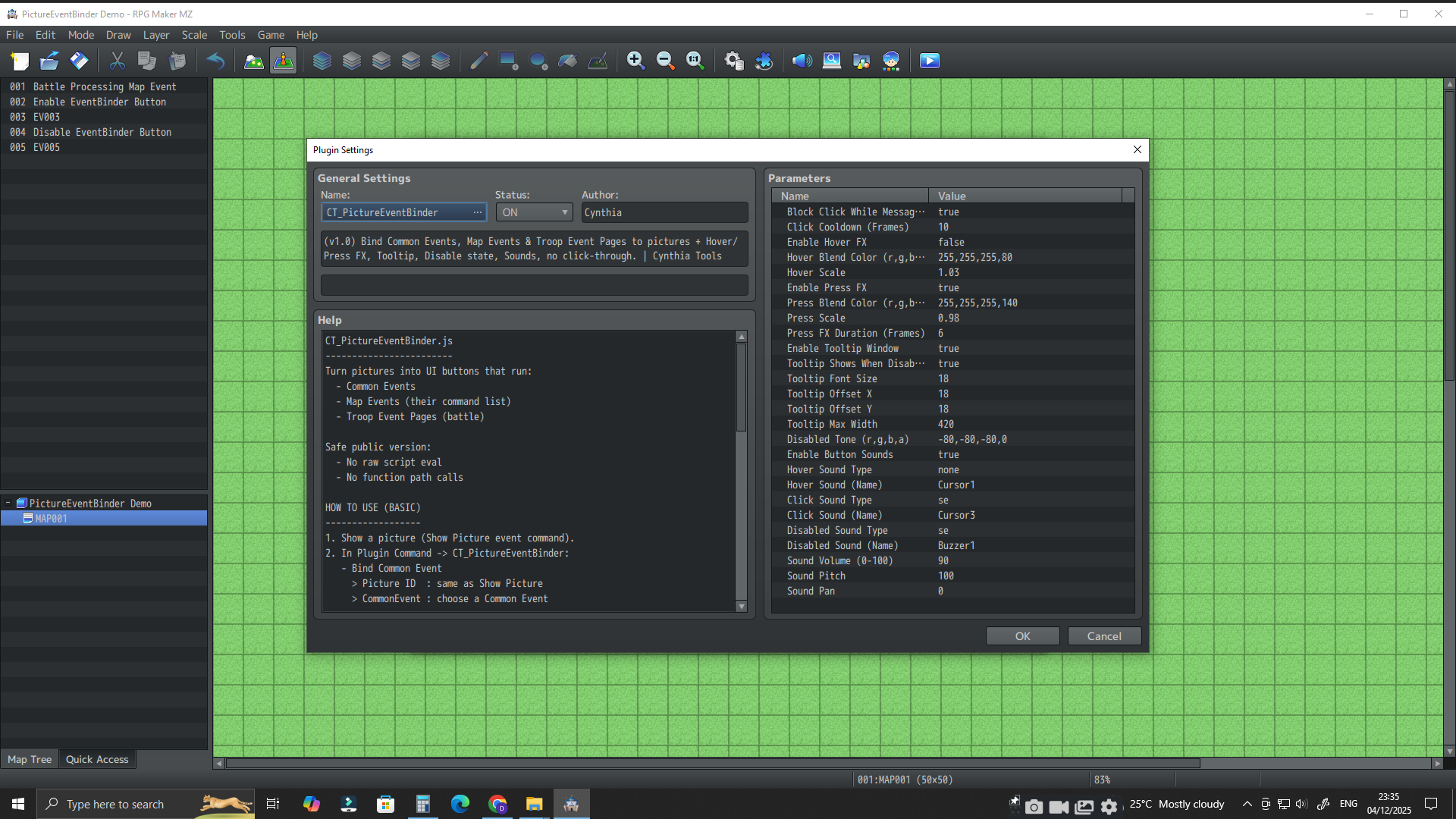 Cynthia Tools - Picture Event Binder(RPG Maker MZ Plugin)